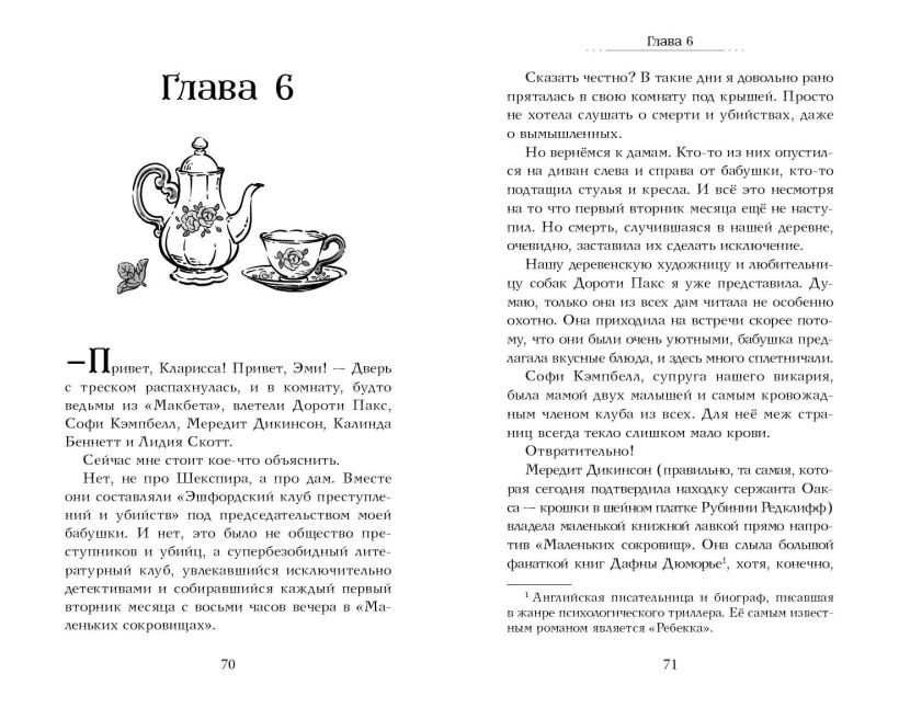 «Это убийство», — сказала бабушка Кларисса, и я была с ней согласна. Хотя звучит немыслимо. Как такое могло произойти в нашей сонной деревушке, где все знают друг друга и где давно не случалось ничего серьёзней кражи велосипеда?! Надо сказать, моя бабушка обожает детективы. И она ни за что не останется в стороне. Она пойдёт по следу, словно мисс Марпл, и обязательно обнаружит убийцу… Что, если им окажется Финн? Нет, я не верю, что парень, который мне так нравится, мог совершить преступление. Но на него указывает слишком много улик. И пока о них знаю только я… Значит, мне нужно опередить и полицию, и бабушку. Чтобы защитить Финна, я проведу собственное расследование!