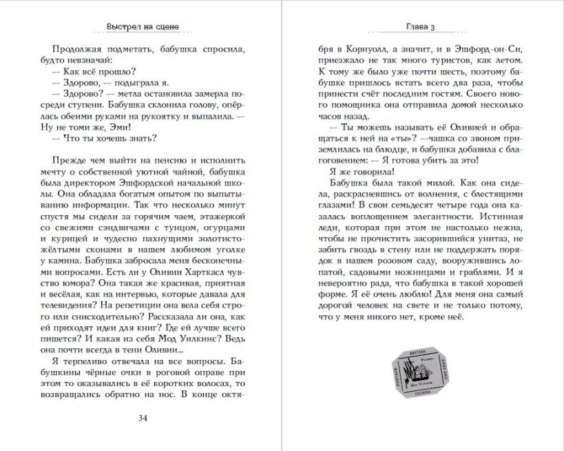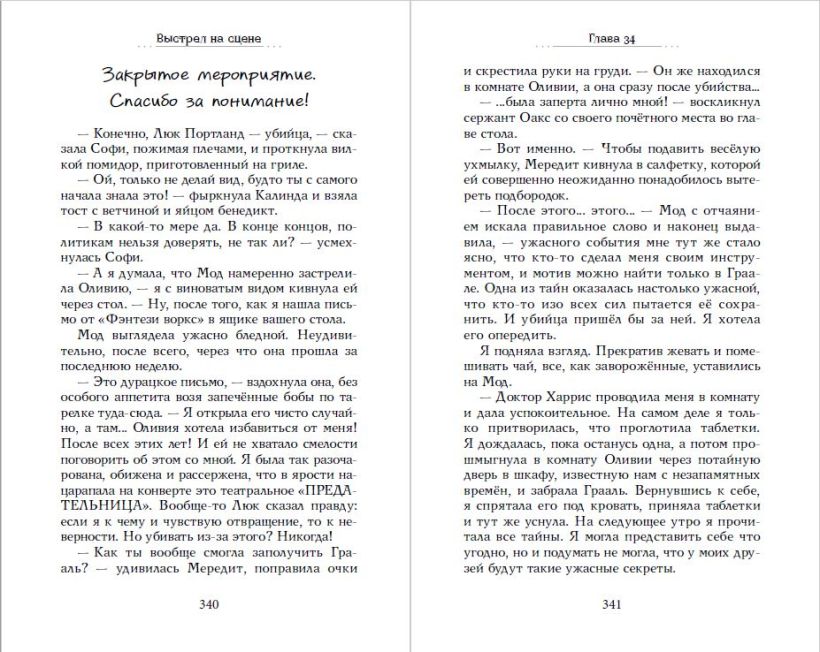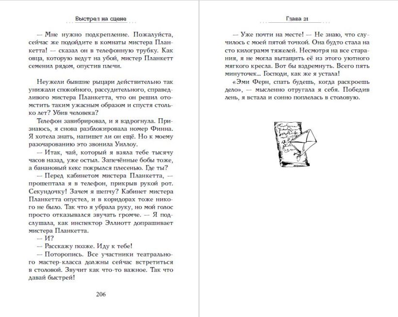 Книга понравится тем, кто уже прочитал «Мейзи Хитчинс» и ищет новую историю с героями своего возраста. 14-ти летняя Эми Ферн расследует убийство знаменитой писательницы, погибшей прямо на сцене школьного театра…