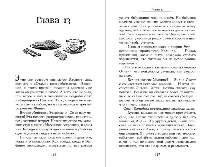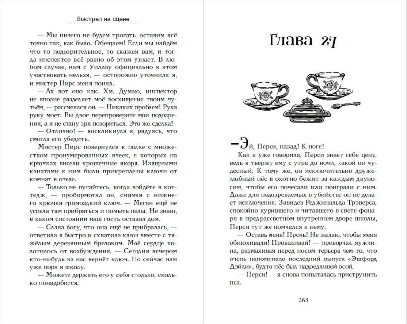 Моё сердце разбито! Финн, лучший парень на свете — и до недавнего времени мой парень, — сказал, что нам лучше расстаться. Он не сможет часто приезжать из Лондона, ему нужно сосредоточиться на учёбе… Ну и пожалуйста! Мне тоже есть чем заняться. Тем более теперь, когда в Эшфорд-он-Си вернулась сама Оливия Харткасл — знаменитый автор детективных романов. Мы с бабушкой были счастливы, когда Оливия заглянула к нам в чайную. А в школе мы с Перси (это мой терьер) решили участвовать в спектакле, который ставят по пьесе Оливии… Но, к несчастью, этот спектакль не состоится! Оливию Харткасл убили — застрелили из пистолета, который все мы считали театральным муляжом, — прямо на сцене. И теперь я просто обязана выяснить, кто заменил реквизит на настоящее оружие. И почему. Только разгадка этой тайны вернёт мне душевный покой!
