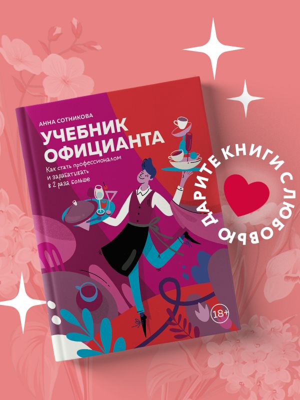 Здесь можно найти ответы на все заданные (и даже еще не заданные) вопросы начинающего официанта. Книга Сотниковой настолько наглядна и разъясняет таким доступным языком, что хочется верить: для многих этот учебник станет воистину волшебным пинком к успеху.