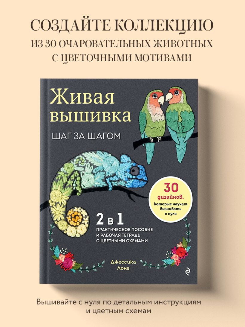 Живая вышивка шаг за шагом. 30 дизайнов, которые научат вышивать с нуля