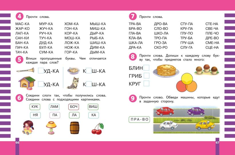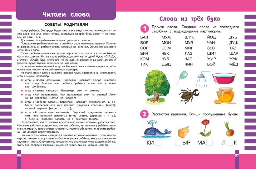 Для того, чтобы процесс обучения чтению был наиболее эффективным, предлагается последовательно пройти несколько этапов: развитие фонематического слуха, знакомство со слогом, чтение слов, предложений, связных текстов и ответы на вопросы по их содержанию, написание печатных букв. Материал представлен в игровой форме, а задания с рисунками способствуют привязке слова к зрительному образу, чтобы процесс чтения был осмысленным. Кроме того, в книге имеются квалифицированные советы, которые помогут родителям обойтись без помощи специалистов.