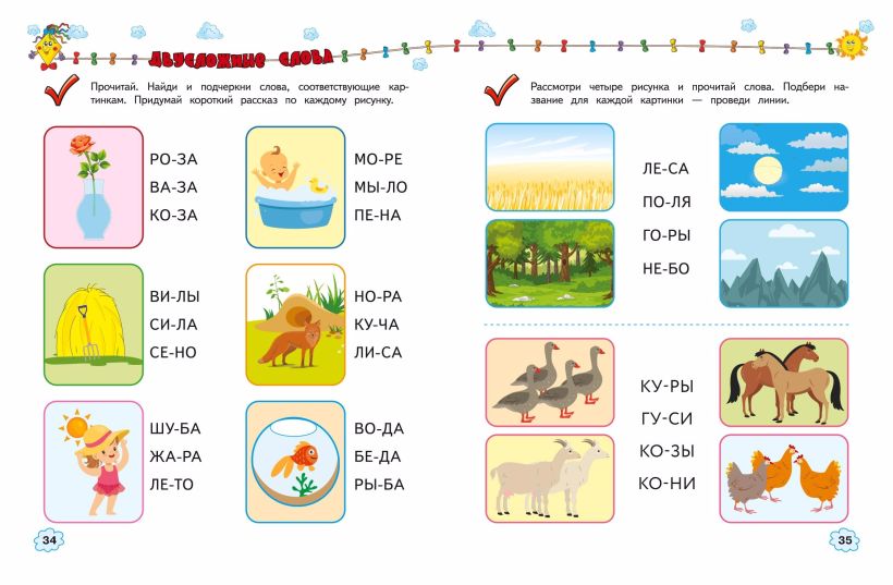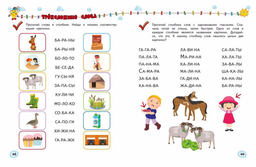 Занимаясь, дошкольник поймет, чем гласные звуки отличаются от согласных, узнает, как образуются слоги, научится читать по слогам слова разной степени сложности, потренируется в чтении словосочетаний, предложений и текстов.