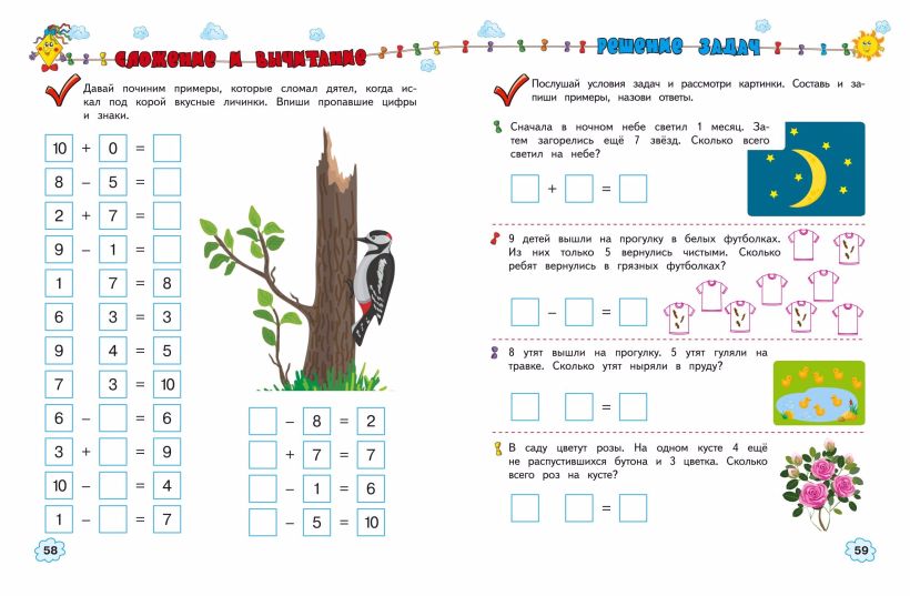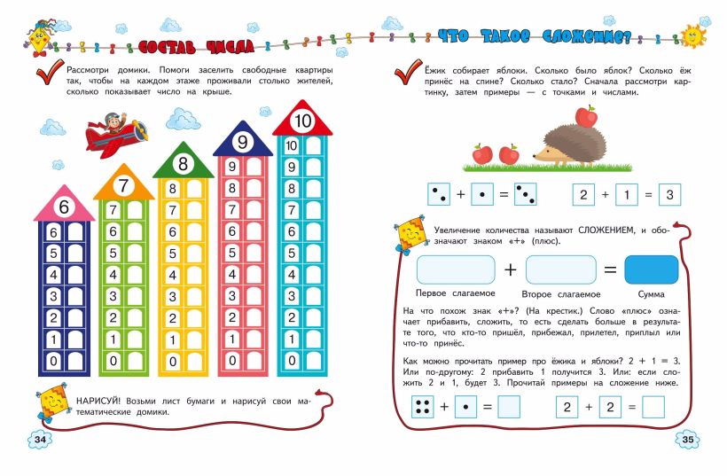 Занимаясь, дошкольник научится считать в прямом и обратном порядке, познакомится с понятиями «состав числа», потренируется выполнять простейшие арифметические действия (сравнение, сложение, вычитание) и освоит решение задач.