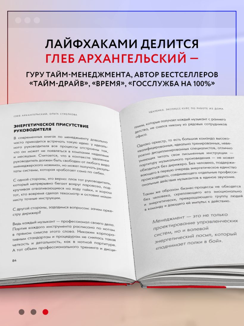 Книга Глеба Архангельского и Ольги Стрелковой — первое реальное руководство по работе из дома. Написанная признанными экспертами по тайм-менеджменту, она задает понятные правила дистанционной работы и помогает общаться онлайн без потери теплого личного контакта, быстро переходить из состояния "тискаю котика" в состояние "решаю важные задачи", мастерски использовать современные инструменты онлайн-работы.