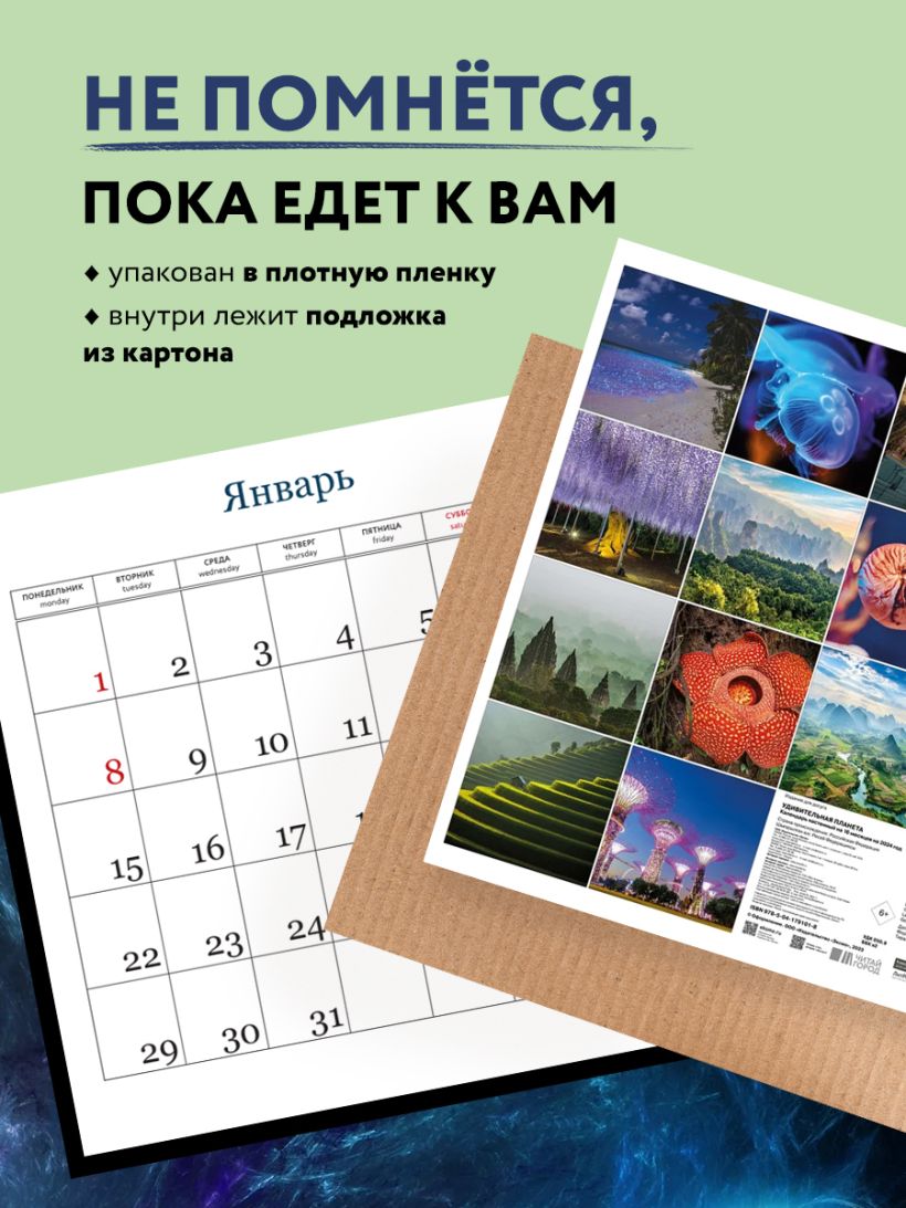 В календаре подобраны красочные фотографии нашей планеты, которые покажут вам, насколько наш мир яркий и многогранный. Фотографии как будто из фильма «Аватар» точно перенесут вас в другую вселенную! И ведь все это можно найти на Земле!