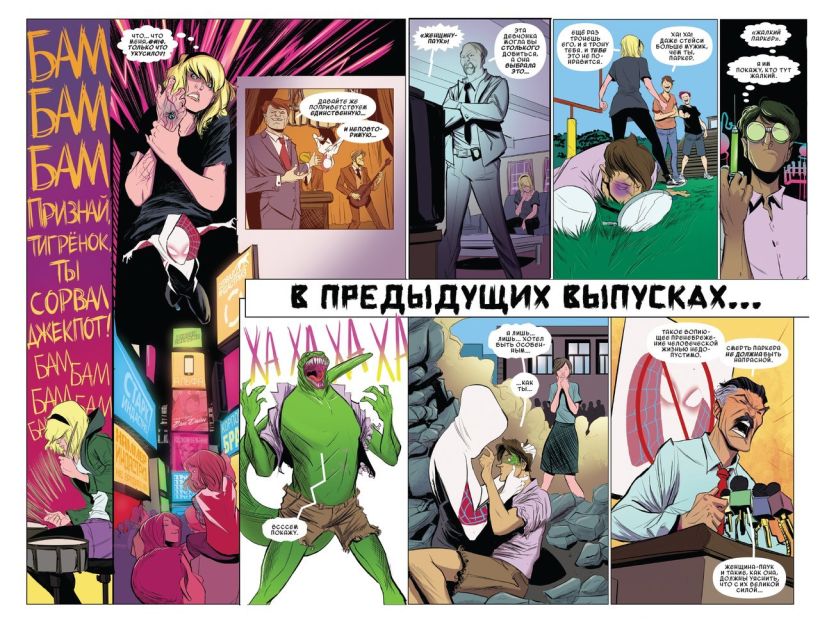 Пролог к самому масштабному событию во вселенной Человека-паука! Нуарный Человек-Паук возвращается! Питер Паркер сталкивается с Мистерио в тридцатые годы! В другой вселенной нам уготована возможность раскрыть тайну Доктора Аарона Айкмана, Человека-Паука! Кем являются зловещий Красный Глаз и Наамура, а также: сможет ли Аарон пережить появление Морлана? А во вселенной, где известная вам история пошла пугающим путём, радиоактивный паук укусил школьника-ботаника, которого уже можно назвать монстром. Затем: кто или что такое этот невероятный ПА//к? И наконец, захватывающий дебют чумового персонажа Паучьего Мира - вселенная, где радиоактивный паук укусил Гвен Стейси!