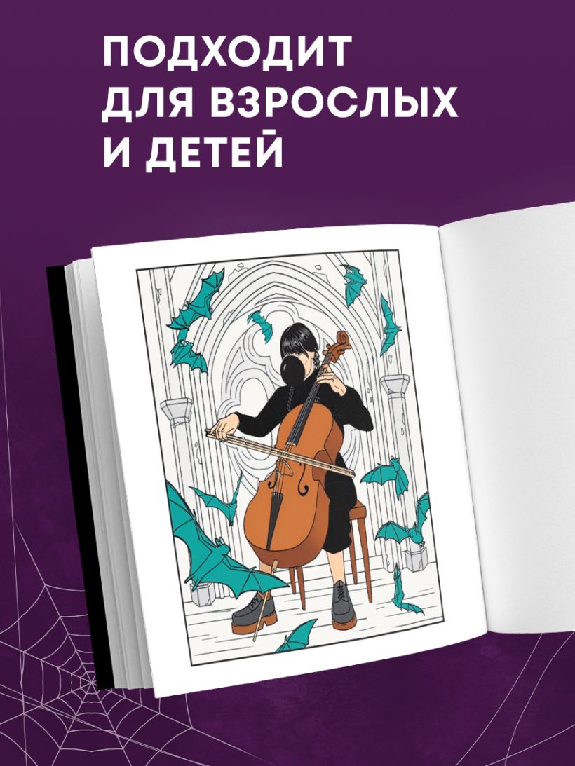 Погрузитесь в мрачную атмосферу вселенной семейки Аддамс вместе с этой раскраской. Под одной обложкой вы найдете 22 иллюстрации, которые расскажут об удивительных приключениях Уэнсдэй Аддамс в академии «Невермор».