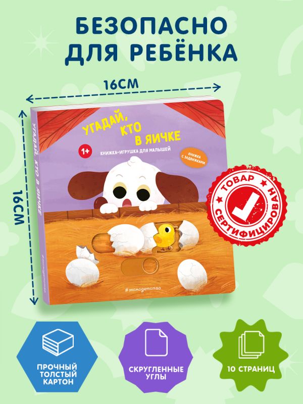 Все страницы и элементы книги имеют безопасную скруглённую форму и сделаны из прочного толстого картона — очень удобно для маленьких ручек!