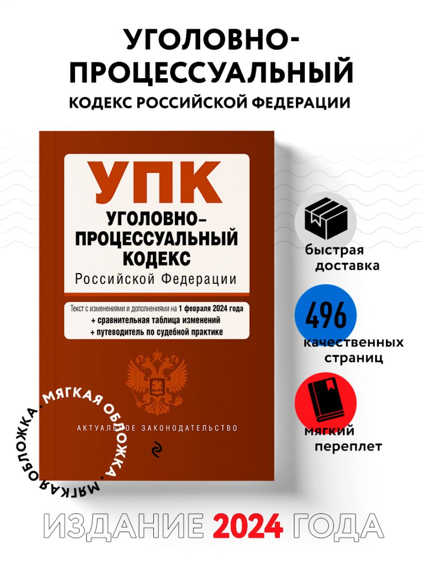 Настоящее издание содержит текст Уголовно-процессуального кодекса Российской Федерации с изменениями и дополнениями на 1 февраля 2024 года с удобной навигацией, таблицей изменений и путеводителем по судебной практике. Если есть изменения, вступающие в силу позднее, то вместе с редакцией нормы, действующей на эту дату, приводится норма в новой редакции и указывается дата, с которой она вступает в силу.