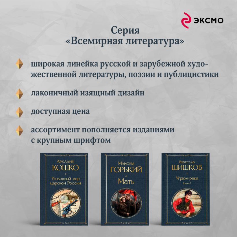 Самый загадочный роман XX века о любви, свободе и сделке с тьмой во имя творчества. В этом произведении Михаил Булгаков соединил сатиру и философию, реальность советской Москвы и вечные библейские образы. Здесь безумие соседствует с гением, а правда — с магией. Это подарочное издание создано с особым вниманием к атмосфере эпохи: глубокий синий оттенок шёлкового переплёта, золотое тиснение, изящный золотой обрез и иллюстрации на мелованной бумаге в духе русского авангарда оживляют дух 1920—1930-х годов. Перед вами не просто книга, а эстетическое проживание бессмертного произведения.