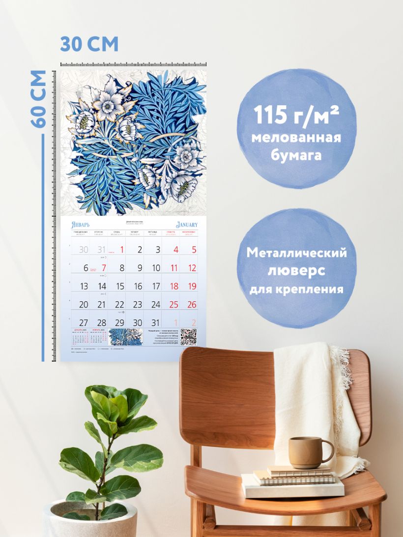 Уильям Моррис. Шедевры дизайна викторианской эпохи. Календарь настенный на 2025 год (300х300 мм)