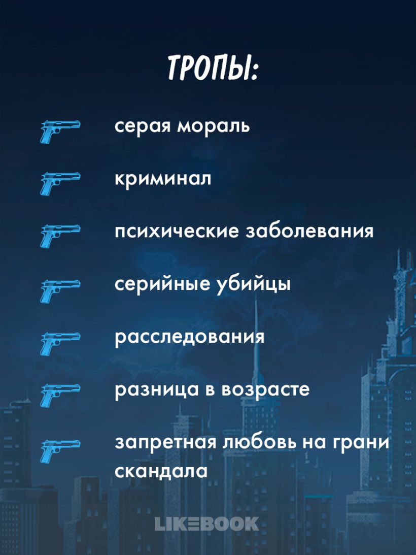 Тропы: «серая мораль», «криминал», «психические заболевания», «серийные убийцы», «расследования», «разница в возрасте», «запретная любовь на грани скандала»...