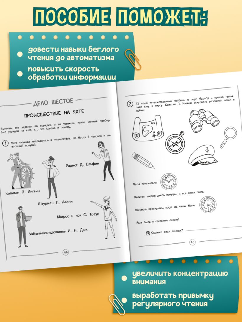 Развивающее пособие от издательства «Эксмо» поможет школьнику улучшить технику чтения, развить логическое мышление, повысить уровень внимания, расширить словарный запас. В основе книги лежит нейропсихологический подход, способствующий быстрому и эффективному обучению чтению, ведь чтение требует сосредоточенности и активной работы двух полушарий мозга. Книга-тренажёр составлена таким образом, чтобы, читая, ребёнок распутывал несложные логические задачки, находил ответы и был заинтересован в результате. Для этого использована форма детективной истории. Выполнение увлекательных заданий сделает процесс чтения более осмысленным, интересным, лёгким, а главное — принесёт удовольствие. Сначала нужно внимательно прочитать и понять каждое задание, затем рассмотреть иллюстрации, вписать ответы, постараться их запомнить. Когда все задания будут сделаны и преступление раскрыто, необходимо прочитать саму историю, чтобы убедиться, что всё выполнено правильно. Автоматизация навыка чтения станет неоценимым вкладом в образование ребёнка и позволит ему лучше учиться по всем предметам.