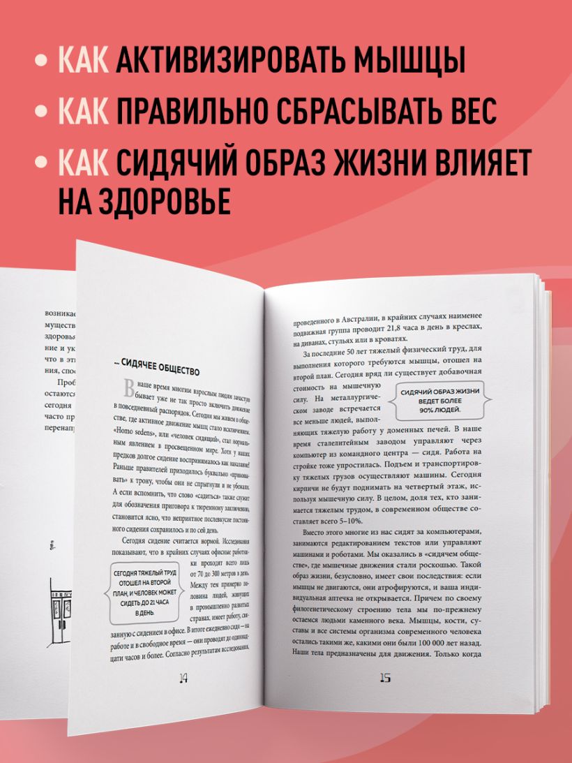 «В этой книге содержатся не просто призывы к активности, но и объяснения, как же она воздействует на организм, как движение увеличивает продолжительность жизни и превращает тело из бесформенного в рельефное и крепкое. Книга полезна читателям всех возрастов: молодым людям, чтобы не загубить свое здоровье, сидя за компьютером в офисе, людям среднего возраста — чтобы воспитать здоровых детей и отсрочить старение, а пожилым — для продления активности на долгие годы».