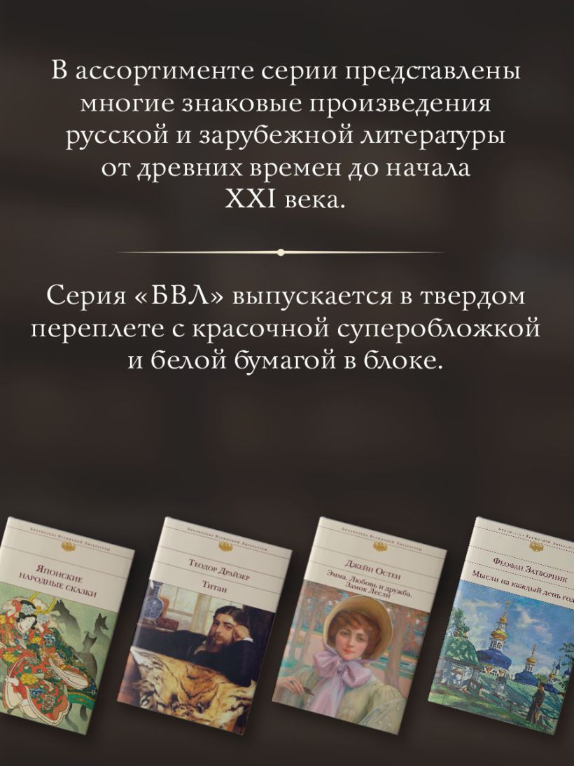 Сборник «Потусторонние истории» Эдит Уортон представляет собой изящную и мастерски составленную коллекцию из пятнадцати рассказов Эдит Уортон, в которых жанр классических историй о призраках переплетается с глубоким психологизмом и социальным подтекстом. Эти рассказы погружают читателя в атмосферу необъяснимой тревоги, мистики и напряжённого ожидания, где призраки часто становятся метафорой моральных конфликтов, подавленности и душевных терзаний. Действие происходит в мрачных особняках и отдалённых усадьбах, а главными героями чаще всего оказываются женщины, сталкивающиеся с ограничениями своего времени и собственного положения. Их внутренние страхи, боль и одиночество преобразуются в непостижимые сверхъестественные явления. Стиль Уортон характеризуется тонкой психологической проработкой персонажей, насыщенностью описаний и тщательным построением сюжета, что делает рассказы одновременно элегантными и глубоко тревожащими. Этот сборник — не просто классика ужасов, а проникновенное исследование человеческой души, скрывающейся за маской внешнего благополучия. «Потусторонние истории» — книга для тех, кто ценит не только атмосферу сверхъестественного, но и художественную силу слова, раскрывающего неизведанные глубины человеческого страха и чувства вины. Эдит Уортон — автор более двадцати романов и десяти сборников рассказов — первая женщина-писательница, удостоенная Пулитцеровской премии в 1921 году. Такие произведения Уортон, как «Обитель радости», «Итан Фром», «Эпоха невинности», «Плод дерева», вошли в «золотой фонд» американской литературы. Капсульная коллекция внутри серии «Элегантная классика»! Любовь многогранна, может вознести, а может разбить сердце. Любовь может идти рука об руку с притягательной тьмой, манящей в потусторонние миры. Поэтому в привычный макет серии мы добавили темные краски, убийственно красивые цветы, а также животных-проводников. Капсулу объединяет общая тематика мистического и картинка на корешке, внутри макет с иллюстрациями.