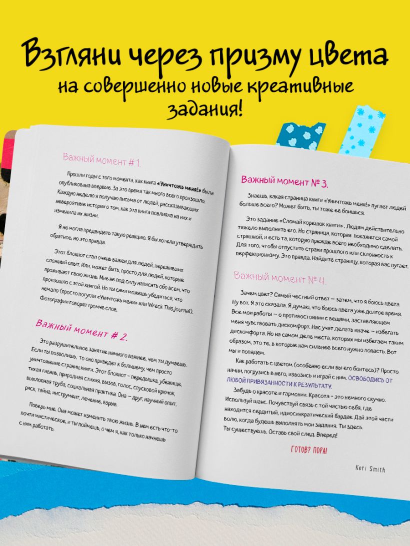 Может быть, ты уже держал в руках мировые бестселлеры Кери Смит, и что-то покажется тебе знакомым. Но далеко не все! Ты сможешь взглянуть через призму цвета на совершенно новые креативные задания! ГОТОВЬСЯ, ВЕДЬ ТЕПЕРЬ ТВОЯ