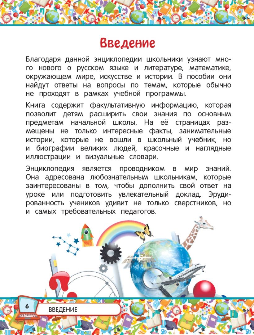 Юные читатели найдут в книге ответы на сотни вопросов, остающихся за рамками школьной программы, а также узнают много нового о русском языке, литературе, математике, окружающем мире, искусстве, истории. Энциклопедия включает в себя интересные факты, занимательные истории и другую дополнительную информацию по основным темам начальной школы.
