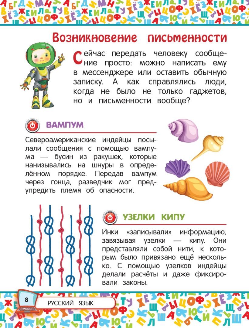 Красочные познавательные иллюстрации помогут лучше запомнить и усвоить материал. А с помощью визуальных словарей, входящих в книгу, дети обогатят свой словарный запас, расширят кругозор, легко и быстро запомнят словарные слова, исторические даты, имена писателей художников и композиторов.