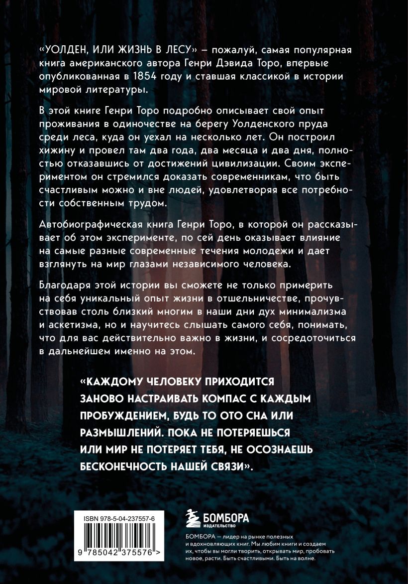 «Уолден, или Жизнь в лесу» — пожалуй, самая популярная книга американского автора Генри Дэвида Торо, впервые опубликованная в 1854 году и ставшая классикой в истории мировой литературы.