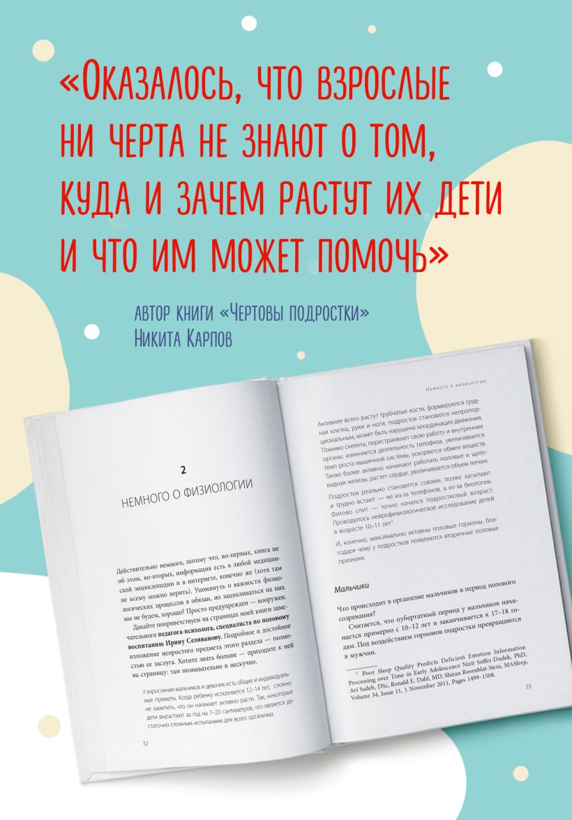 Автор книги «Чертовы подростки! Как найти общий язык с повзрослевшим ребёнком» – профессионал и практик! В его книге освещена актуальная и очень сложная тема. Главная цель книги – заставить родителей окунуться в мир и состояние подростков, понять все взаимосвязи их мироощущений, проанализировать своё поведение, а потом выстраивать с детьми желательные взаимоотношения.