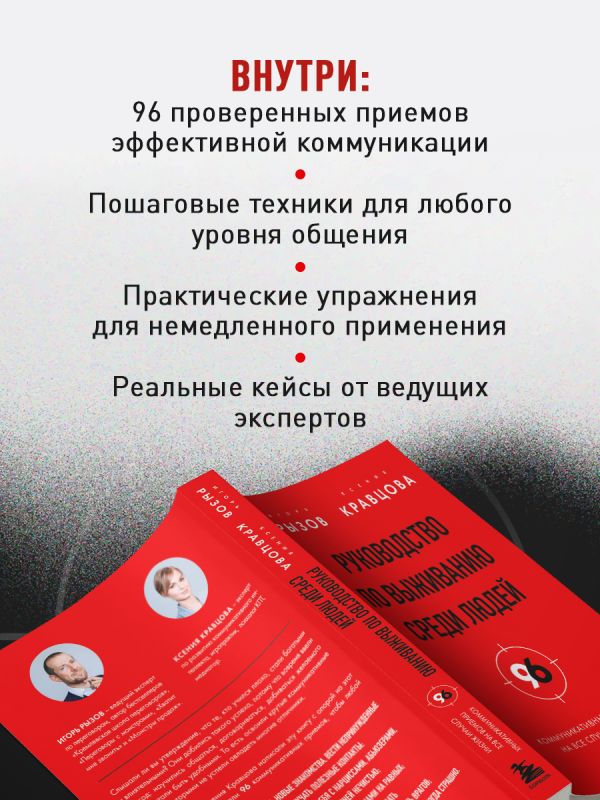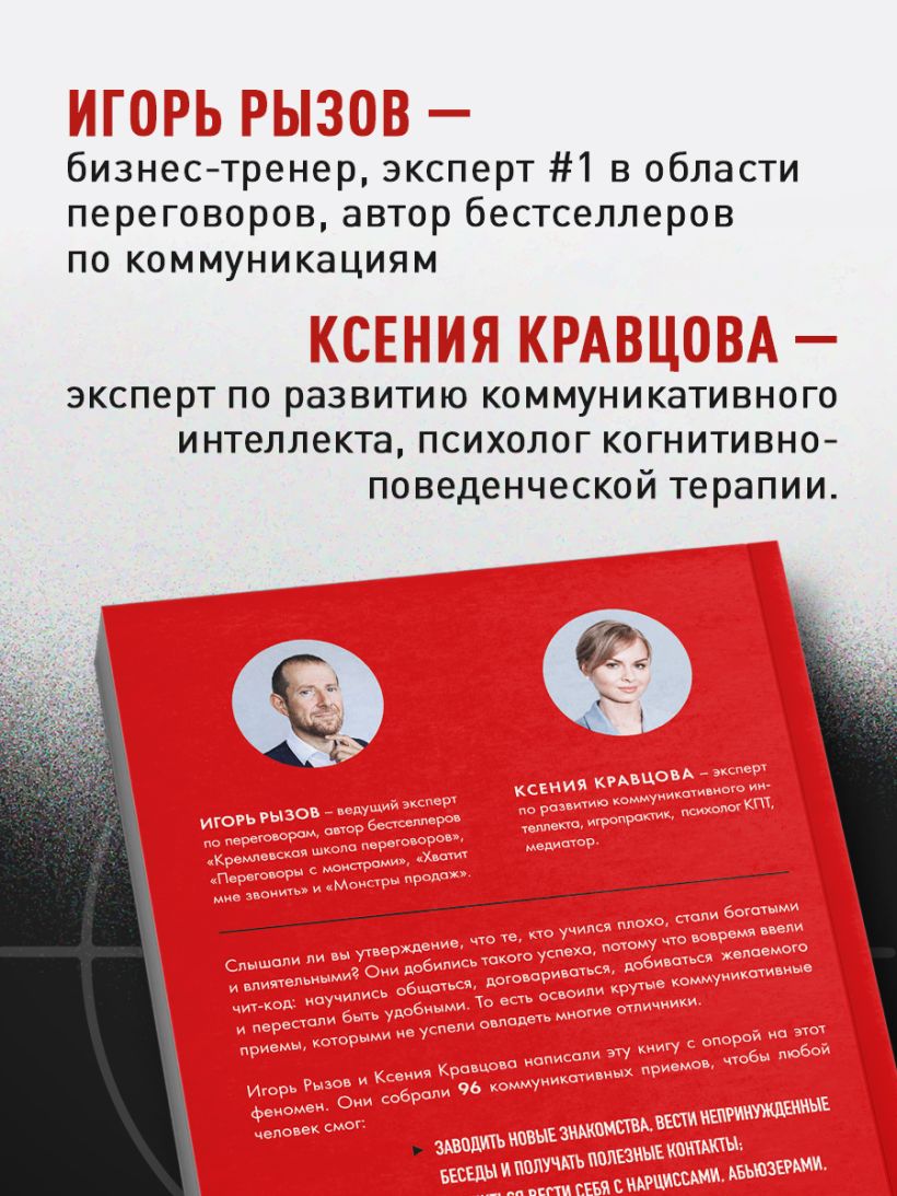 Игорь Рызов и Ксения Кравцова написали эту книгу c опорой на этот феномен. Они собрали 96 коммуникативных приемов, чтобы любой человек смог: