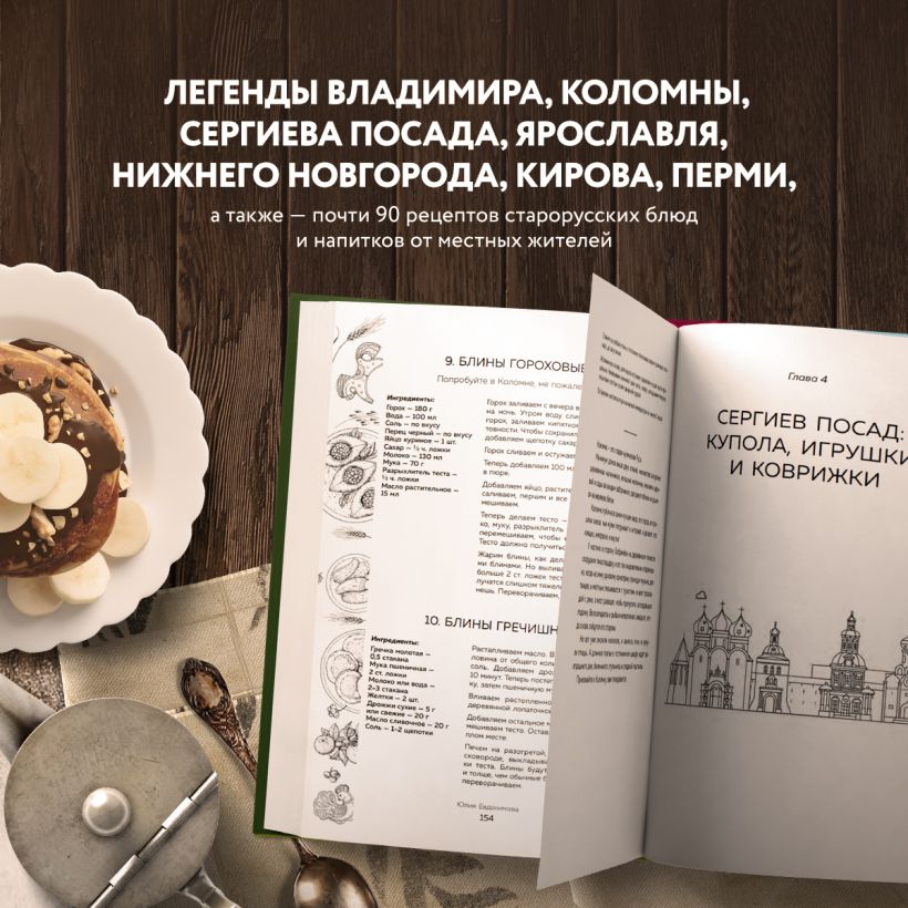 Прекрасные продажи первой книги о России — «К России с любовью. В поисках тишины, восходов и изумрудного варенья» — позволили нам приготовить новую книгу о российских городах, близких от нас и не очень, но таких родных, удивительных своей историей, культурой, былью и небылью и вкуснейшей, особенной в каждом месте, кухней. Юлия Евдокимова своей любовью к путешествиям, еде и людям снова покоряет сердца поклонников, привозя из странствий новые впечатления, истории, блюда. Она увлекает нас за собой во Владимир, Вязники, Муром, «откуда все начиналось», заставляет вспомнить о Коломне, Зарайске, Сергиевом Посаде, которые раскинулись «в двух шагах от Москвы»; заглянуть в Киров и Пермь — казалось бы, «города неожиданные», но на деле удивительно насыщенные памятниками истории и кировскими белыми ночами. А в заключении насладиться заходами солнца в Нижнем Новгороде, зайти во все без исключения монастыри и храмы Ярославля и попробовать дома тамошние рецепты.