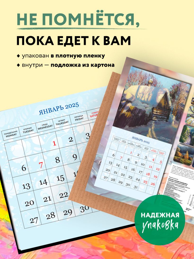 ● Душевные и близкие каждому виды русской природы: после грозы в мае, в момент оттепели в середине зимы, первые проталины в марте, буйство красок в апреле, яркие блестящие снежные узоры в морозный зимний полдень в феврале — станут местом силы и вдохновения в каждом доме.