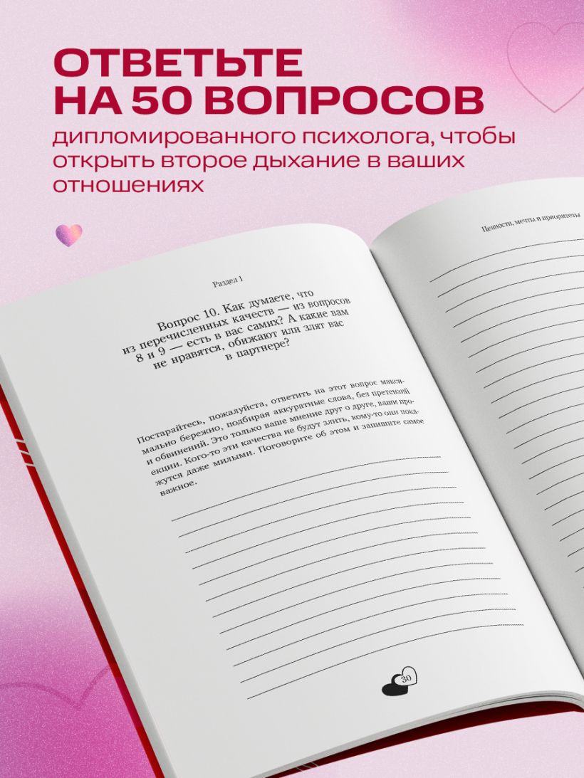 В этом дневнике собрано 50 вопросов, которые помогут заново влюбиться друг в друга, зажечь искру страсти и ощутить эмоциональную связь с партнером. И, главное — открыть второе дыхание в ваших отношениях.