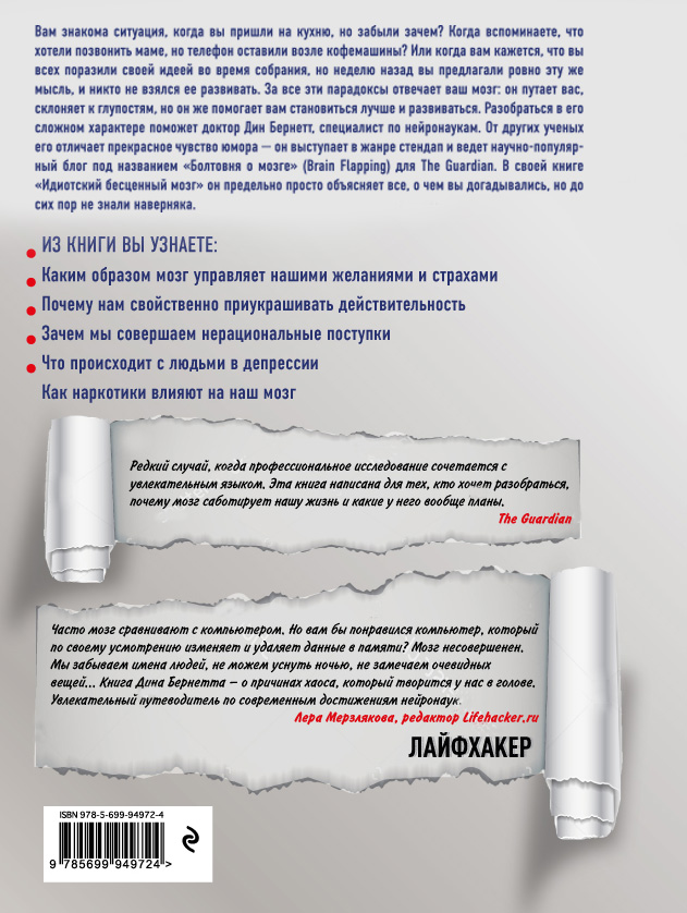 Мозг - самый удивительный орган нашего тела. Он часто заставляет нас совершать дурацкие поступки и принимать странные решения, но при этом в нем скрыты невероятные возможности, о которых многие и не догадываются. В этот комплект вошли книги "Идиотский бесценный мозг" и "Суперноль", из которых вы узнаете о всех парадоксах и загадках нашего мозга, а также научитесь использовать его скрытый потенциал для развития своих талантов и способностей.