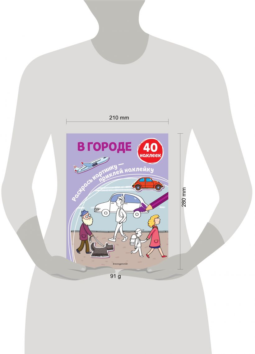 Отправляйтесь вместе с героями на городские улицы, в транспорт и скверы, раскрашивайте детальные иллюстрации и дополняйте картинки наклейками.