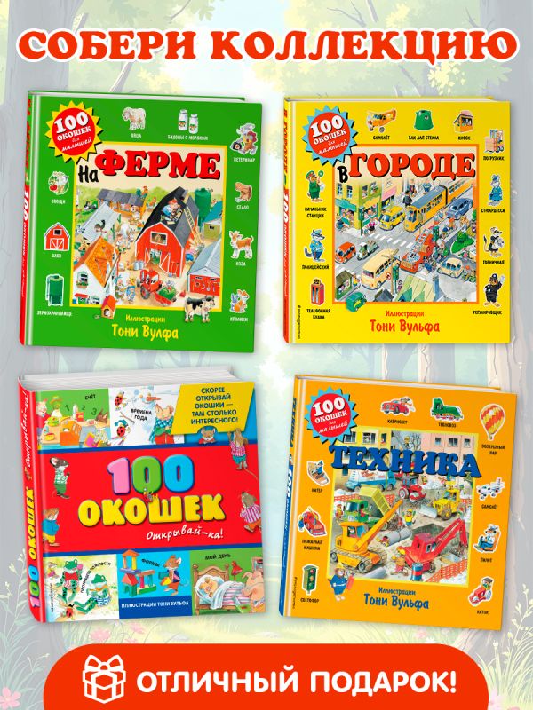 Малыши просто обожают открывать картонные окошки, под которыми скрывается картинка-сюрприз! А толстый прочный картон вместе с безопасными закруглёнными концами страниц позволит играть с книгой очень долго.