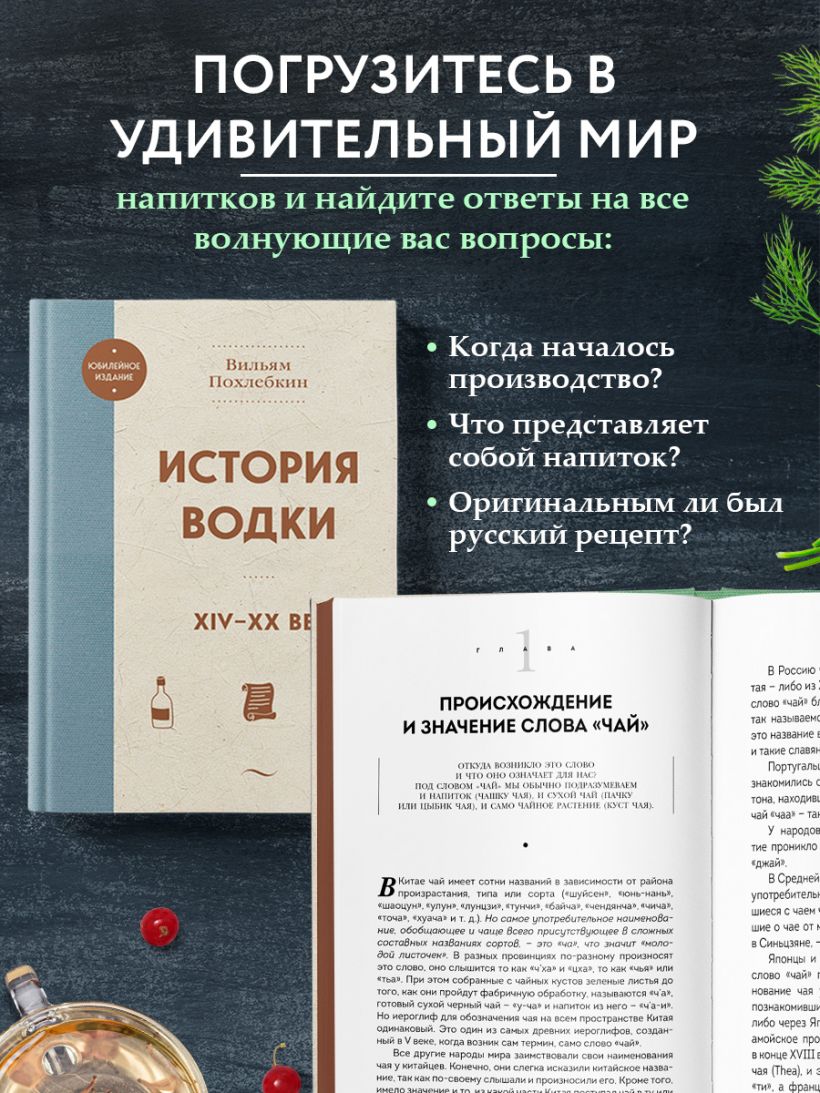 Если вы хотите действительно понять, что такое чай как растение и как напиток, то нет издания более серьезно продуманного, исторически точного и с любовью написанного, чем "Чай" Вильяма Похлебкина. Это касается, впрочем, всех его книг, в которых он описал многочисленные процессы в кулинарии с педантичностью историка и одержимостью кулинара. А эта история чая еще связана и с зарождением чаеводства в советские времена у нас в стране, что небезынтересно всем любопытствующим историческим контекстом. Кроме того, в данную книгу мы включили статью "Из истории кухни Руси и России", которая расширит ваши знания не только о кулинарии, но и самом ее авторе.