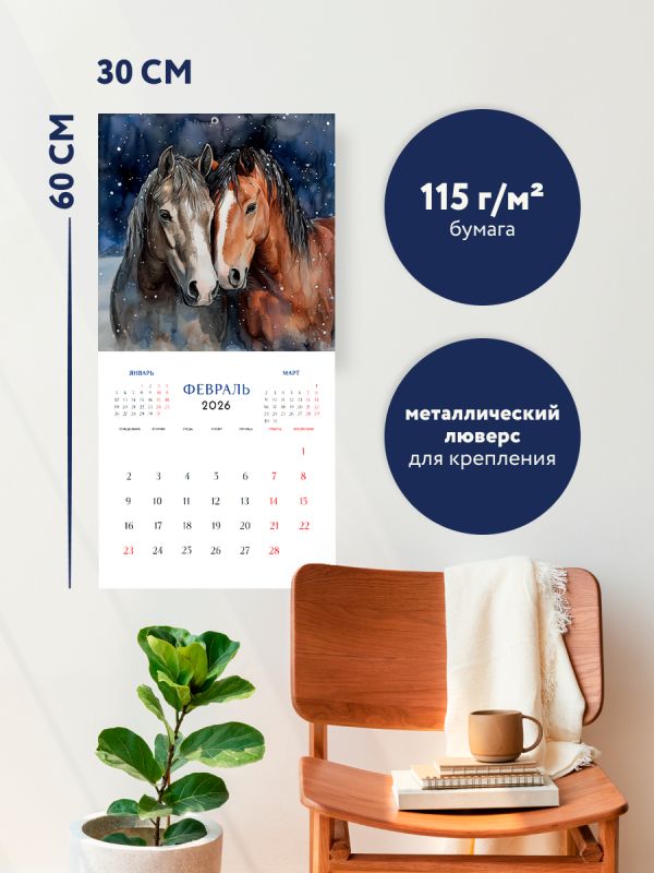 - Тип календаря — настенный перекидной.