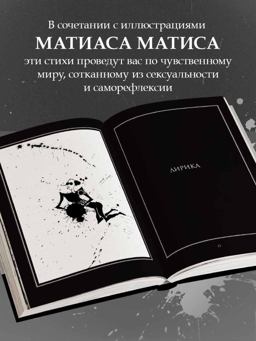 Его лирика провокационна, и только настоящие ценители смогут по достоинству оценить ее и понять. В сочетании с иллюстрациями Матиаса Матиса эти стихи проведут нас по чувственному миру, сотканному из сексуальности и саморефлексии.