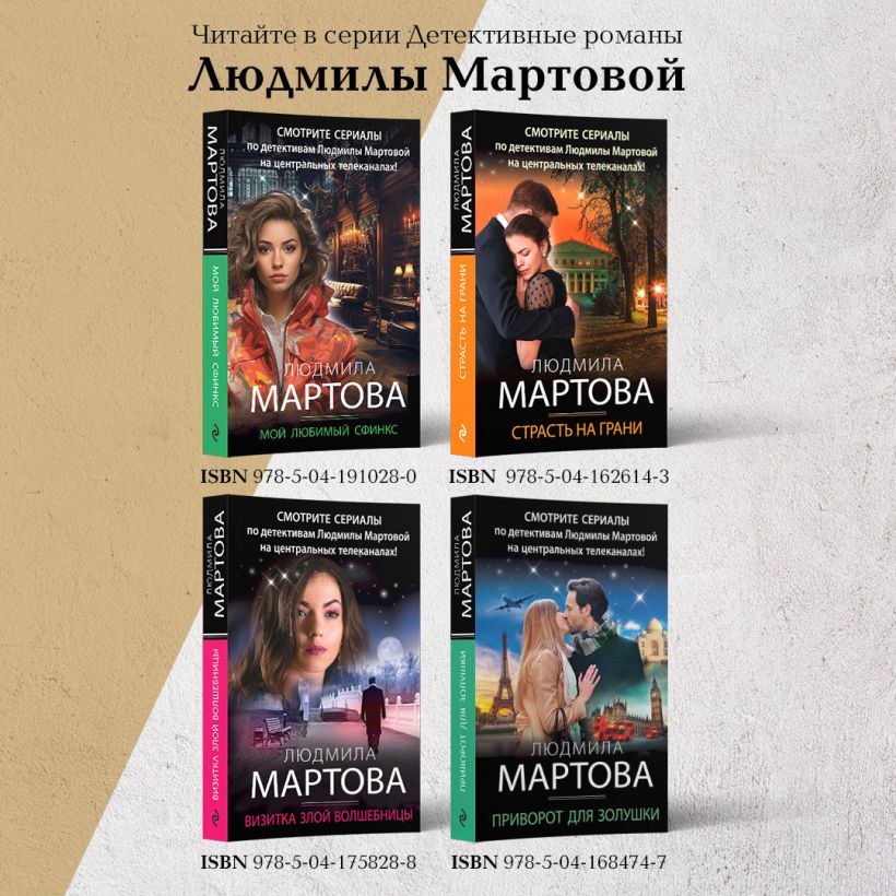 Людмила Мартова — мастер увлекательной детективной мелодрамы, автор захватывающих остросюжетных историй. Их отличают закрученная детективная интрига, лихой финал с неожиданной развязкой и, конечно же, яркая любовная линия. Героини романов Людмилы Мартовой — современные молодые женщины, которые точно знают, чего хотят от жизни.