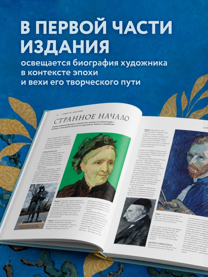 Каждая книга из серии «Портрет художника» построена по уникальному принципу: в первой части издания освещается биография художника в контексте эпохи и вехи его творческого пути, а во второй представлена галерея всех его самых значимых работ с подробными описаниями. Книга «Ван Гог. Жизнь и творчество в 500 картинах» повествует о творческой судьбе одного из самых известных художников-импрессионистов, она описывает историю жизни художника в культурном контексте современного ему общества, позволяет проследить его творческий путь к вершинам мастерства и увидеть формирование индивидуального стиля.