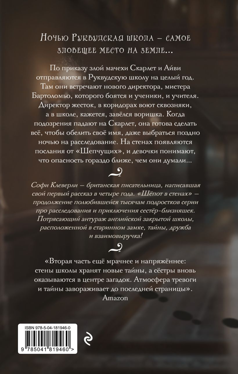 По приказу злой мачехи Скарлетт и Айви отправляются в Руквудскую школу на целый год. Там они встречают нового директора мистера Бартоломьо, которого боятся и ученики, и учителя. Директор жесток, в коридорах воют сквозняки, а в школе, кажется, завёлся воришка. Когда подозрения падают на Скарлетт, она готова сделать всё, чтобы обелить своё имя, даже выбраться поздно ночью на расследование. На стенах появляются послания от «Шепчущих», и девочки понимают, что опасность гораздо ближе, чем они думали…
