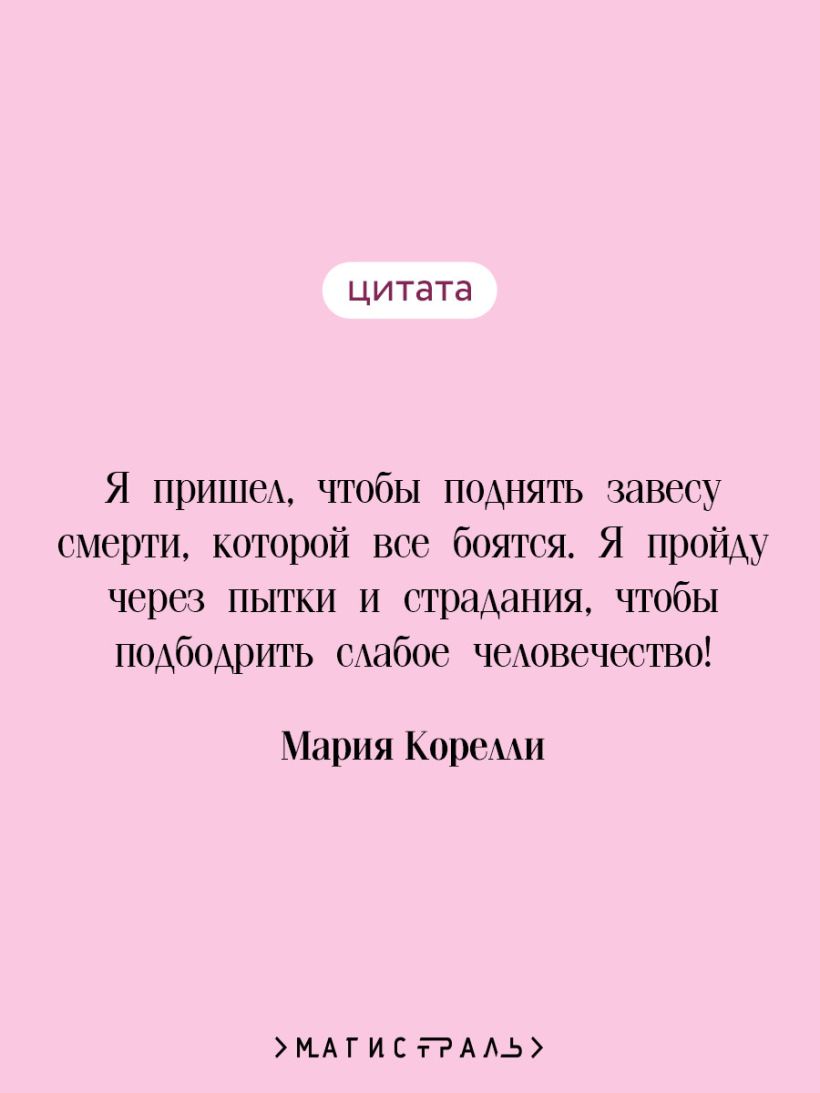 Мария Корелли (1855—1924) один из самых продаваемых британских писателей поздней Викторианской и Эдвардианской эпох. Успех Корелли был огромным, настолько, что она была единственным писателем, приглашенным на коронацию Эдуарда VII.