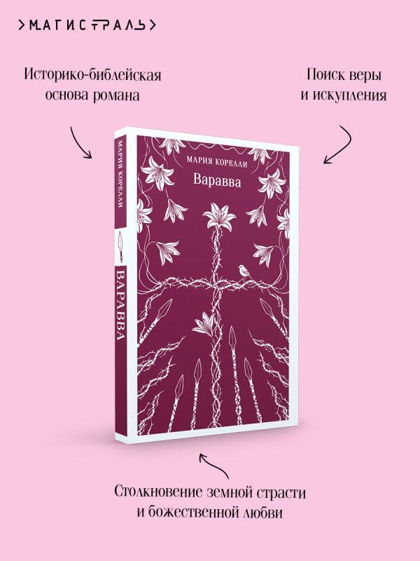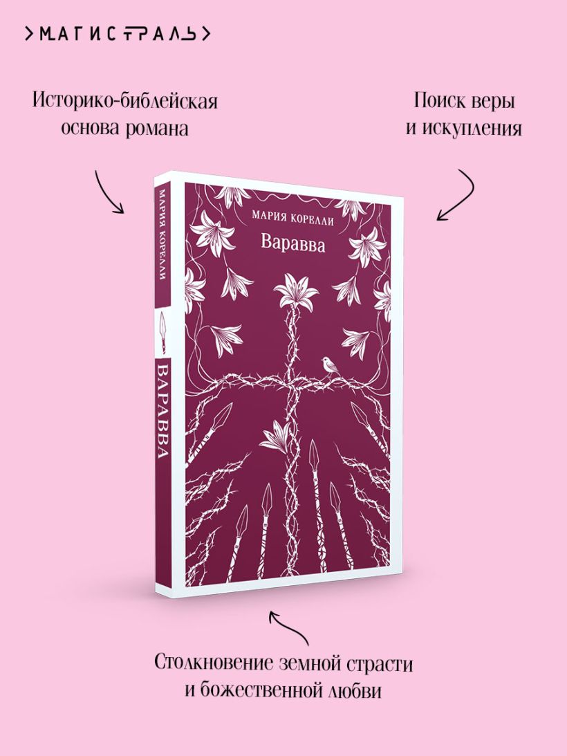«Варавва: Сон о трагедии мира» — роман Марии Корелли, впервые опубликованный в 1893 году. История представляет собой вымышленный рассказ о жизни Вараввы, известного преступника, освобождённого по воле народа вместо Иисуса Христа во время суда у Понтия Пилата. Мария Корелли через образ Вараввы раскрывает духовное преображение грешной души, которая, соприкоснувшись с Божественным, приходит к раскаянию, внутреннему очищению и возрождению. Роман призывает задуматься о природе греха, прощения и о вечных ценностях, подчёркивая актуальность евангельской истории даже спустя тысячу лет. Яркие описания и поэтический язык Корелли создают сюрреалистическую и потустороннюю атмосферу.