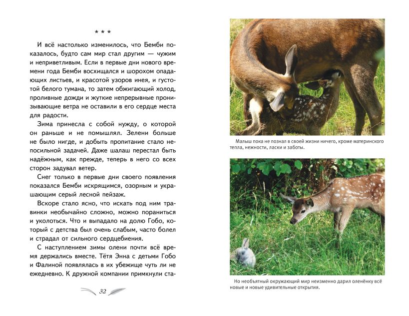 Книгу дополняют красивые кадры из кинофильма «Бемби. История жизни в лесу» французского режиссёра Мишеля Фесслера.