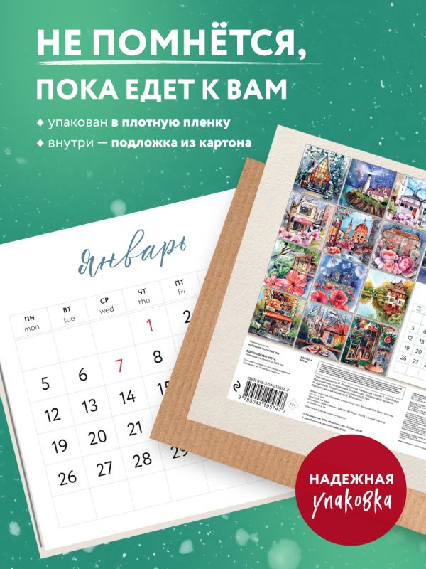 Этот календарь — как путешествие без билетов, наполненное красками, вдохновением и атмосферой маленьких радостей. Каждый месяц вас ждет новая акварельная история: уютные домики, живописные улочки и теплые пейзажи со всего света авторства чудесной ANAYAKOO (13 тысяч подписчиков). В крупной минималистичной сетке календаря удобно записывать планы на месяц, отмечать важные дни. Удобный формат 170х170 мм позволит повесить его абсолютно везде. Подарите себе или близкому путешествие в счастье!