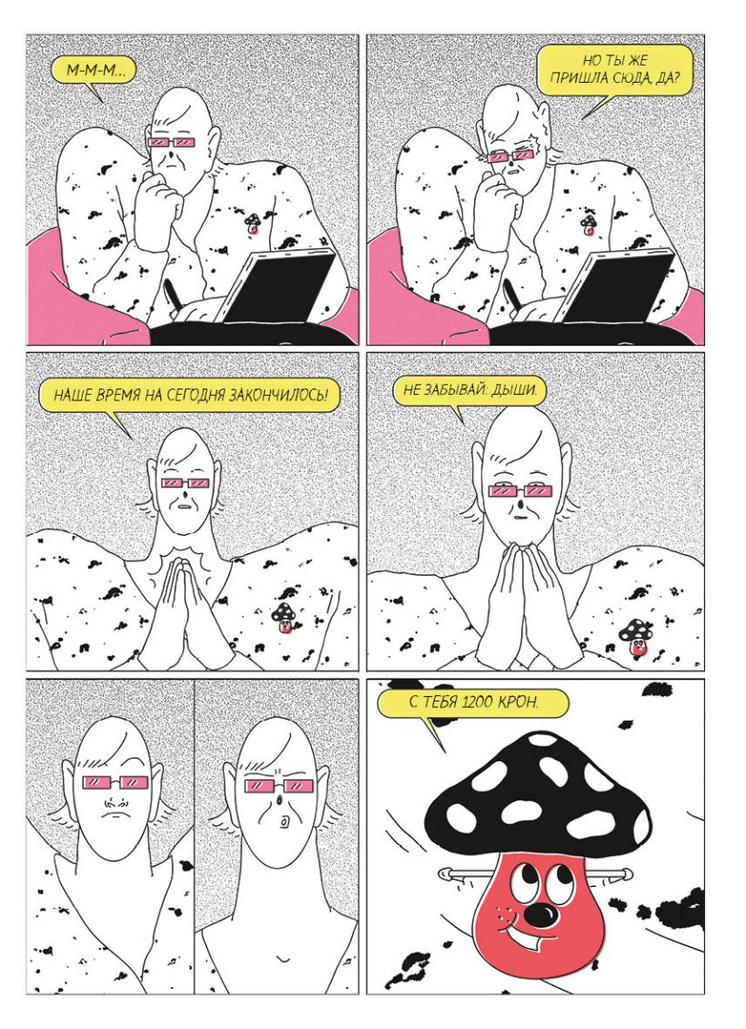 Боишься публичных выступлений, высоты, ответственности? А еще насекомых, грозы или монстров под кроватью? Каждый сталкивался с такими страхами и часто прятался, вместо того чтобы посмотреть им в глаза. Как побороть свои страхи и пройти мягкую терапию? Тебе поможет… кот! Он любит устраивать суету, гоняться за едой и ворчать на хозяйку, но при этом делится психологическими советами, словно заправский психолог. Эту необычную историю создала молодая и талантливая девушка — Лапка Художника — иллюстратор и будущий психолог. Она ведет веселый блог с комиксами и короткими жизненными роликами, в которых ты точно узнаешь себя. Там и кот, скачущий по ночам, и комар, сводящий с ума, и мозг, застрявший на старой песне из рекламы. Котокомикс для тех, кто: - устал беспокоиться и тревожиться по пустякам; - хочет понять свои эмоции без скучных теорий; - готов прислушаться к советам кота-психолога; - обожает юмор, комиксы и жизненные зарисовки. Каждая глава обозначена определенным цветом, поэтому ты никогда не запутаешься, где именно находишься: в зеленой главе с детскими страхами или в фиолетовой — с экзистенциальными. «Эта книга как теплый разговор с собой в моменты тревоги. С юмором, легкостью и неожиданной глубиной она помогает взглянуть на страхи по-другому — мягко, бережно и с улыбкой. Кот-психолог протянет свою лапку помощи. И расскажет, как легче и спокойнее воспринимать эту жизнь». — Любовь Стяпшина, автор и иллюстратор метафорических открыток «Дом твоего сердца» «Добрые комиксы о девочке, которая боялась всего на свете. Но, ура, рядом появляется кот: пушистый, спокойный и мудрый. Он не смеётся над страхами, а объясняет, что всё не так уж страшно. Очень милая, тёплая и поддерживающая книжка. Особенно когда тревожно и хочется, чтобы кто-то просто был рядом». — Алла Гончарова, автор проекта Curavamnedura