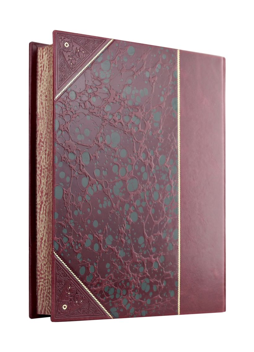 Книга в коллекционном составном переплете с тиснеными уголками в стиле 19-го века.