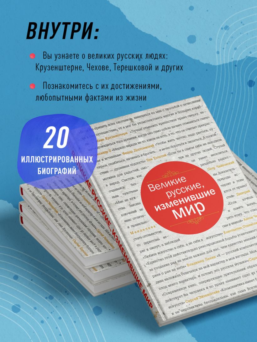 - 20 иллюстрированных биографий великих русских людей, оставивших наиболее заметный след в мировой истории.