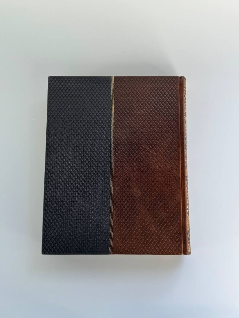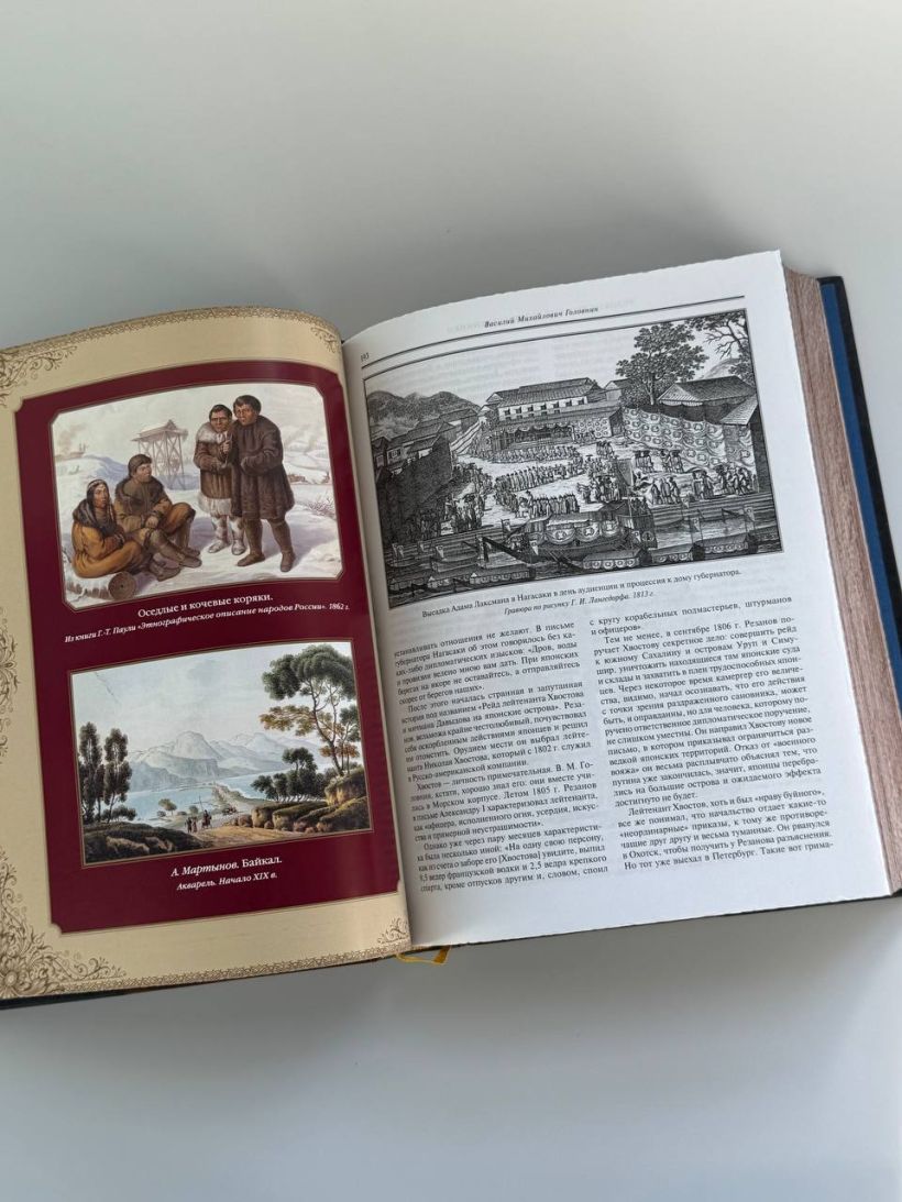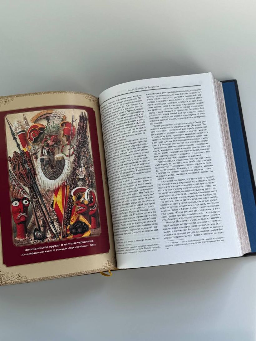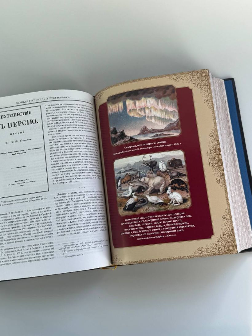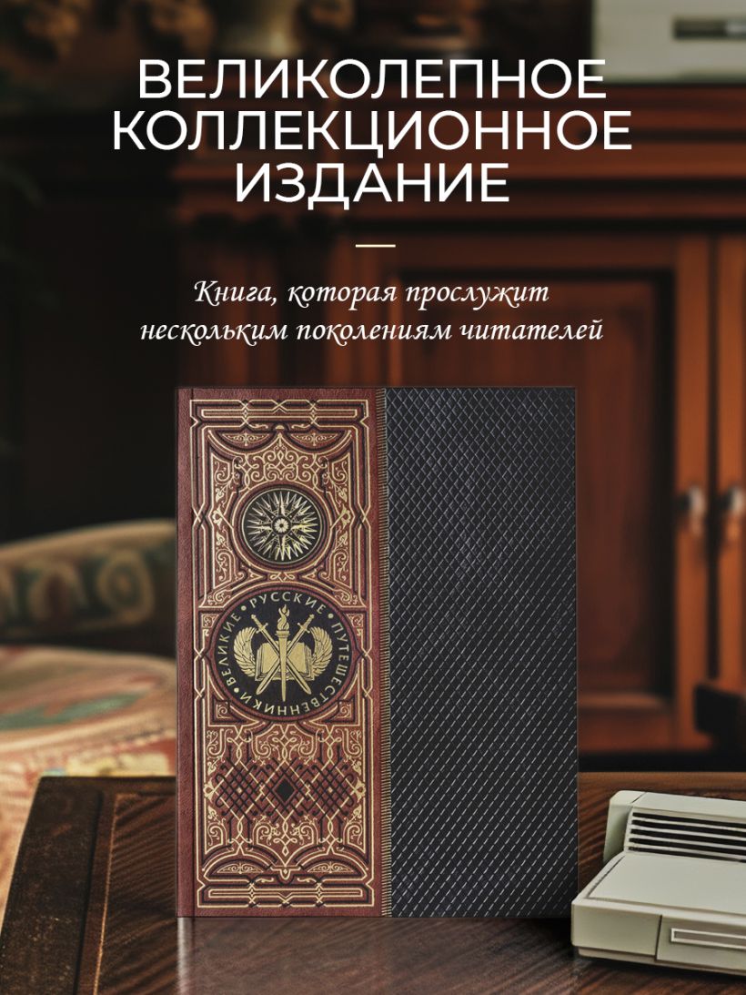 Книга в коллекционном инкрустированном переплете. Переплет изготовлен их двух видов натуральной кожи по технологии XIX века и украшен сплошным тончайшим тиснением, в полном соответствии с лучшими образцами переплетов европейских мастеров. Использовано 3 вида тиснения — золото, черный натуральный пигмент и рельефное тиснение. В оформлении переплета использованы универсальные растительно-геометрические плетеные орнаменты, благодаря им книга будет отлично смотреться на любой книжной полке. Лента для закладывания страниц и каптал, скрепляющий верх и низ объемного тома, изготовлены из шелка. Бумага в книге легкая, матовая, что обеспечивает комфортное чтение даже длительное время, иллюстрации напечатаны на мелованной бумаге. Обрез книги торшонирован, окрашен и вызолочен вручную. К книге прилагается красочный сертификат, подтверждающий уникальность издания, он вложен в каждый экземпляр и пронумерован.