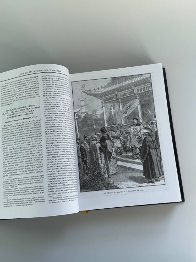 Подарочное издание в изящном коллекционном переплете ручной работы, созданном по старинной технологии 19 века в лучших традициях книжного искусства из натуральной кожи цвета бордо. Книга отпечатана на плотной бумаге, содержит множество графичкских иллюстраций. Тиснение рельефное, золотое, натуральным красным пигментом и медью. Корешок кругленый. Обрез окрашен. Переплет оформлен по авторским рисункам, выполненным специально для данного издания, в оформлении использованы изобразительные мотивы, традиционные для культуры Средневекового Китая. Форзацы из фактурной бумаги, каптал и ляссе из шелка. К книге прилагается красочный сертификат, отпечатанный на бумаге «верже», подтверждающий лимитированный тираж и качество переплета ручной работы. Книга в кожаном переплете ручной работы послужит нескольким поколениям читателей.