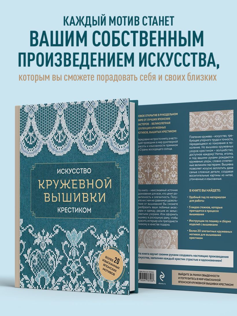Эта книга — не просто сборник схем. Это путеводитель в мир красоты и изысканности, созданной своими руками. Каждый крестик — как нота в музыкальной партитуре, создающей удивительную симфонию красок и форм. И хотя плетение кружева — искусство, требующее упорного труда и точности и передающееся из поколения в поколение, но вышивка кружевных узоров крестиком — волшебство, доступное каждому! В этой книге вы найдете не просто инструкции — вы найдете ключ к магии, позволяющей с помощью лишь нитки и иголки создавать уникальные кружевные узоры, словно сплетенные великими мастерами.