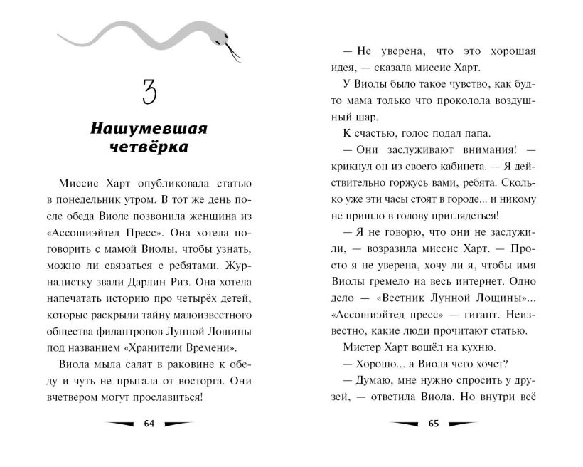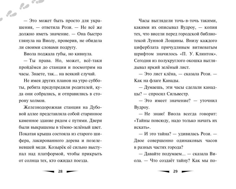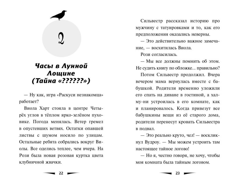 Часы перед библиотекой Лунной Лощины стоят с незапамятных времён. Никто и не задумывался, как они здесь оказались, пока в город не переселилась Виола Харт. А ведь эти часы таят в себе много тайн! Почему минутная стрелка резко перепрыгивает на пять минут вперёд? Зачем на них картинки? И сколько в городке ещё похожих часов?