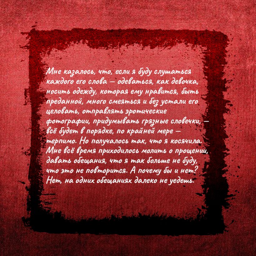 «Физиологический и оттого не очень приятный текст о насилии — эмоциональной ловушке, в которую легко попасть, когда тебе двадцать, и ты думаешь о любви, как о вещи, которую нужно заслужить, вымолить и выстрадать. Текст, в котором нет счастья и выхода, и оттого в нем душно — хочется разбить окно и попросить героиню подышать как можно чаще, а потом ноги в руки и бежать. Прочтите и никогда не падайте в эту пропасть». — Ксения Буржская, писательница.